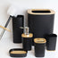 Set kupaonske galanterije od 6 elemenata donosi savršenu kombinaciju modernog mat dizajna i prirodnih bambus detalja, stvarajući luksuzan i skladan izgled kupaonice.