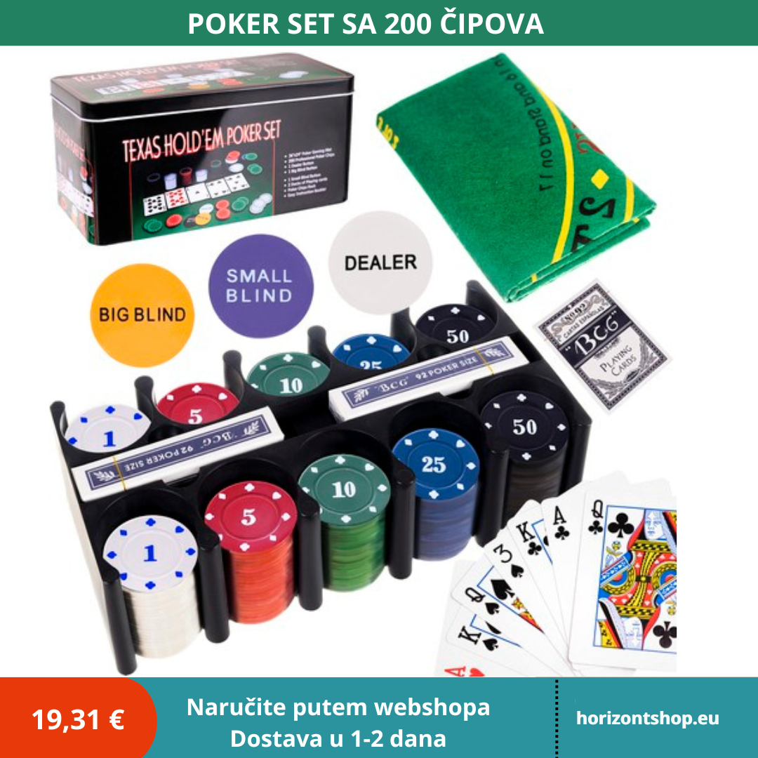 Fantastičan kompletan set za Texas hold ’em poker i druge kartaške igre. Sve što vam je potrebno da se osjećate kao u pravom kasinu!